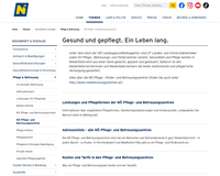 "Unter dem Dach der NÖ Landesgesundheitsagentur sind 27 Landes- und Universitätskliniken sowie 50 Pflege-, Betreuungs- und Förderzentren vereint. Gesundheit und Pflege werden in Niederösterreich aus einer Hand gedacht, geplant und gesteuert. [...] Informationen über angebotene Pflegeformen, Standortspezialisierungen und Schwerpunkte. Leitgedanke: Der Mensch steht im Mittelpunkt! [...]" https://www.noe.gv.at/noe/Pflege/Noe_Pflege_Betreuungszentre...