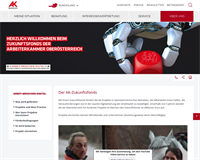 "Mit ihrem Zukunftsfonds fördert die AK Projekte in oberösterreichischen Betrieben, die Mitarbeiter:innen helfen, die Herausforderungen durch die rasante Digitalisierung der Arbeitswelt zu bewältigen. Innerhalb von 5 Jahren wendet die AK Oberösterreich für konkrete Projekte im Rahmen des Zukunftsfonds 30 Millionen Euro auf. Projekte einreichen können Betriebsräte und Unternehmen (beziehungsweise deren Beschäftigte). [...]" https://ooe.arbeiterkammer.at/arbeitmenschendigital