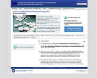 "Hier können Sie nach Verdachtsfallmeldungen über Arzneimittelnebenwirkungen suchen bzw. melden [...] Auf dieser Website werden Daten zu Verdachtsfällen von Nebenwirkungen angezeigt, auch als Verdachtsfälle von Arzneimittelnebenwirkungen bezeichnet, für Arzneimittel, die im Europäischen Wirtschaftsraum (EWR) zugelassen sind. Bei zentral zugelassenen Arzneimitteln wird Zugriff sowohl über den Namen des Arzneimittels als auch über den Namen des Wirkstoffs gewährt. Bei nicht zentral zugelassenen Arzneimitteln wird Zugriff nur über den Namen des Wirkstoffs gewährt. [...]" https://www.adrreports.eu/de/index.html