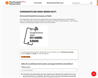 "Wir beraten Sie kostenfrei und anonym am Telefon Die Sorgenhotline Wien ist eine erste Anlaufstelle bei psychosozialen Belastungen für alle Menschen in Wien. Die Hotline bietet telefonische Abklärung, Entlastung und direkte, schnelle Beratung – damit Sorgen, Probleme und Belastungen möglichst nicht zu einer Krise werden! [...]" https://psd-wien.at/sorgenhotline-wien