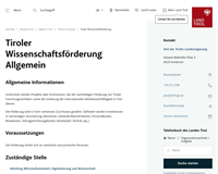 "Finanzielle Unterstützung von WissenschaftlerInnen und dem wissenschaftlichen Nachwuchs aller Tiroler Universitäten, aller Tiroler Fachhochschulen, der Pädagogischen Hochschule Tirol sowie der KPH Edith Stein [...]" https://www.tirol.gv.at/buergerservice/e-government/formular...